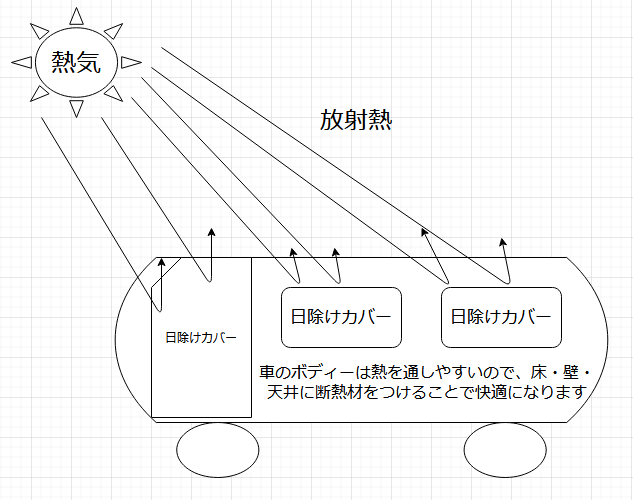 これを理解することで、バンの中を夏は涼しく、冬は温かく保てるようにする方法が理解できます。