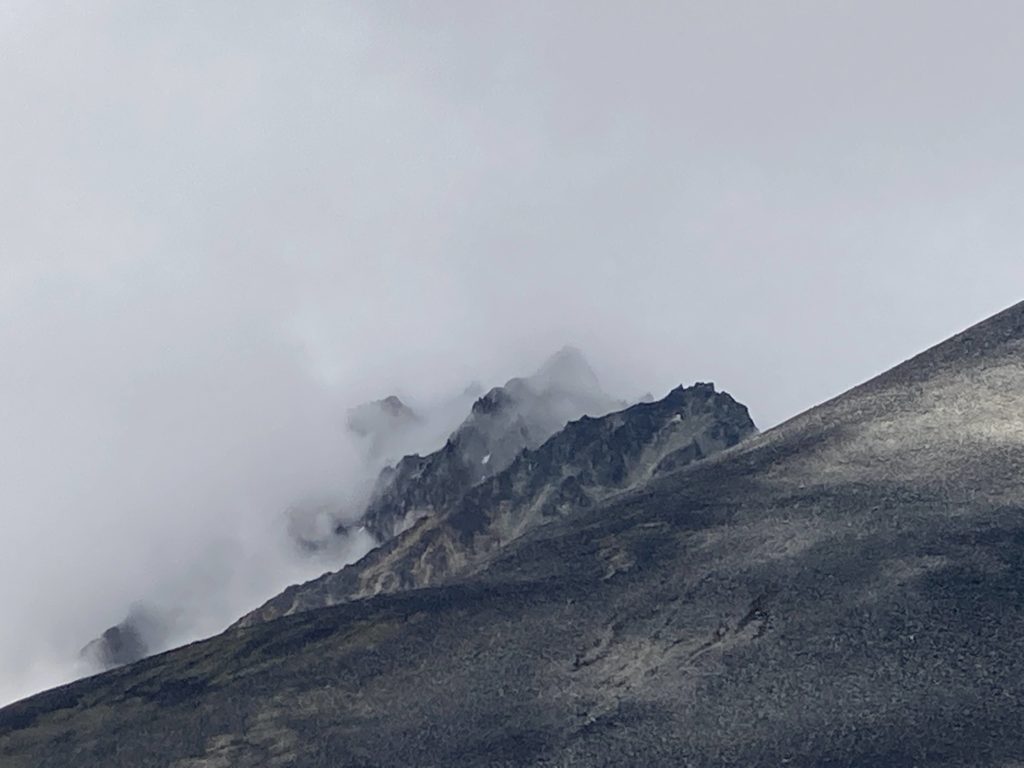 雲から出現したのは、夏にもかかわらず雪山でした。